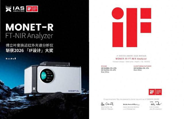 近日,2026年德国iF盘算推算奖(iFDESIGNAWARD)获奖名单精采揭晓。无锡迅杰光远科技有限公司(以下简称“迅杰光远”)自主研发的MONET-R傅立叶变换近红外光谱(FT-NIR)分析仪,从公共繁密参赛作品中脱颖而出,荣获该奖项。这象征着中国国产高端分析仪器在利用理念与工业盘算推算层面,进一步取得国际专科畛域的认同。