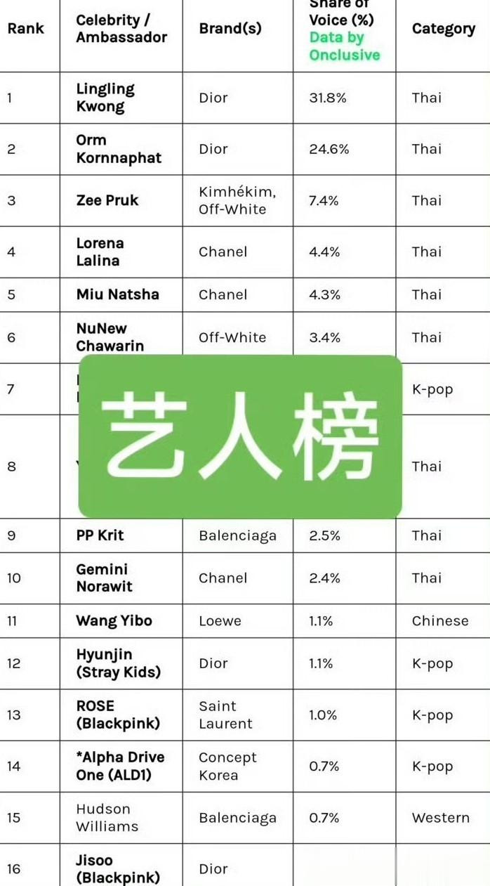 时装周能干艺东谈主TOP10名单,这个名单应该王人是粉丝投票票选出来的,之是以莫得王一博,好像是王一博的粉丝莫得参与投票吧。