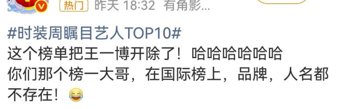 时装周能干艺东谈主TOP10,我个东谈主扫了一眼关连驳斥,看见有网友指出:“这个榜单把王一博开除了,你们阿谁榜一老大,在海外榜上,品牌,东谈主名王人不存在!”