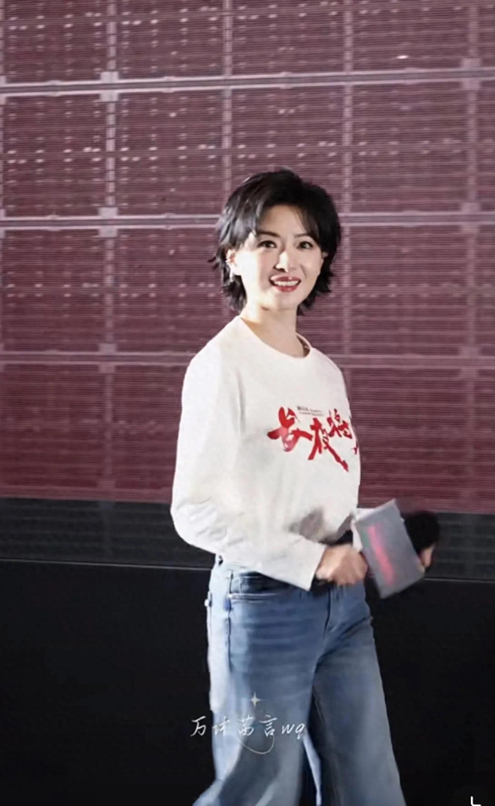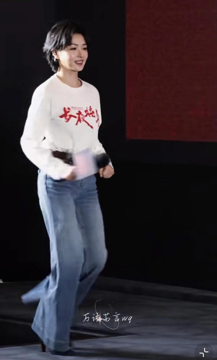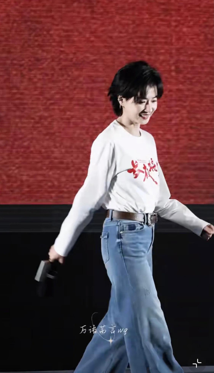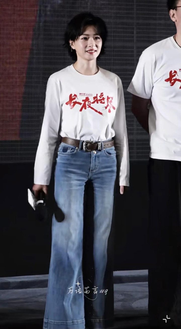万茜带着新电影出当今不雅众眼前,她穿戴电影《永夜将尽》的白色T恤出当今首映礼的现场。万茜穿戴蓝色阔腿裤搭配玄色尖头高跟鞋,她利落狂妄的跑到舞台上,热诚奕奕的。万茜这么穿很好意思,她斯文的绝不穷困。
