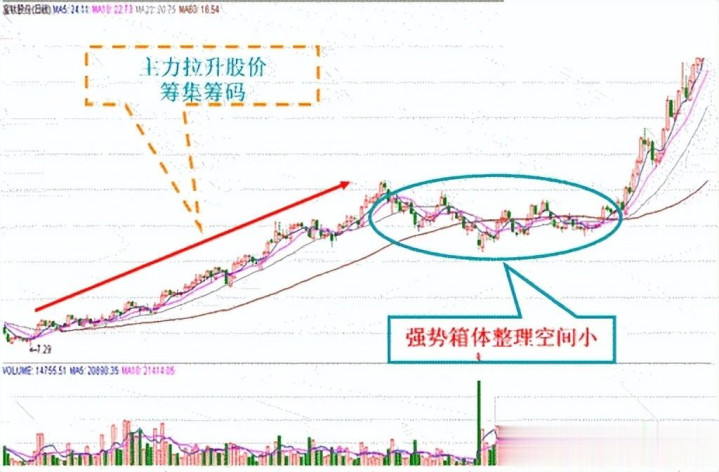 庄家高抬高打强势集会筹码,引起股价上升,然后洗盘,回档量萎缩,变成缩量口头。然后是再次吸筹,股价回升。到股价冲过变成箱体顶部之时,一经是庄家拉升股价的时候。此时,庄家条件股价快速离开成本区。是以,而后股价高潮速率会加速。