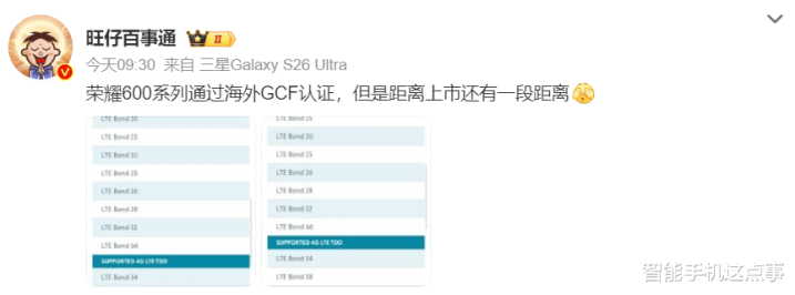 再看荣耀600系列,把柄GCF官网公开信息,型号为“LNA-NX1”的树立以“HONOR 600 Lite”的称号于2026年1月13日得回认证,参考编号13518。