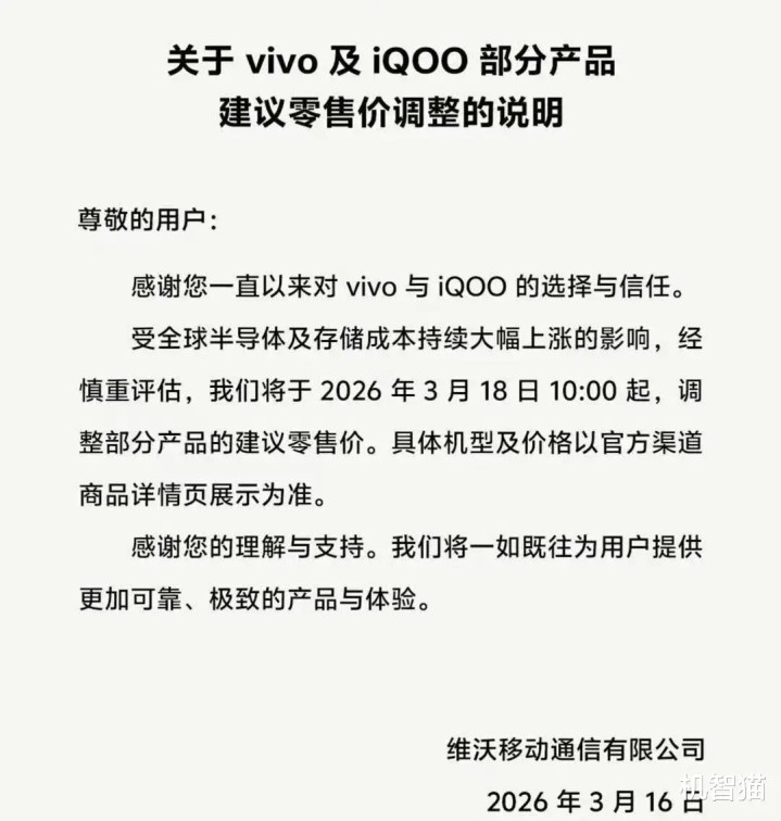 OPPO在3月16日起对部分在售机型调价,触及的正是主打性价比的A系列、K系列,以及子品牌一加,主品牌的Find、Reno系列则不受影响;紧随自后的vivo在3月18日官宣调价,主品牌的X300、S50系列险些无调价当作,但子品牌iQOO多款机型涨幅刷新理会: