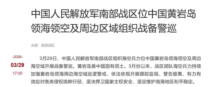 靠近菲方的背刺,中国通过多维度反制传递底线。3月25日起,中国舟师和海警在黄岩岛开展战备警巡和法律讲明张望,公开驱离菲方侵权船只。