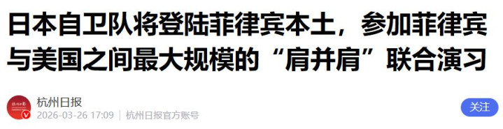 3月下旬,菲方晓谕将举办24国界限的“肩并肩”集结军演,除好意思、日、澳等6国径直派兵外,另有18国派不雅察员,界限创历史之最。日本派出1000名自保队员,系二战后初度登陆菲律宾参与军演。菲方直言军演旨在“珍摄地区安全”,实则针对中国。