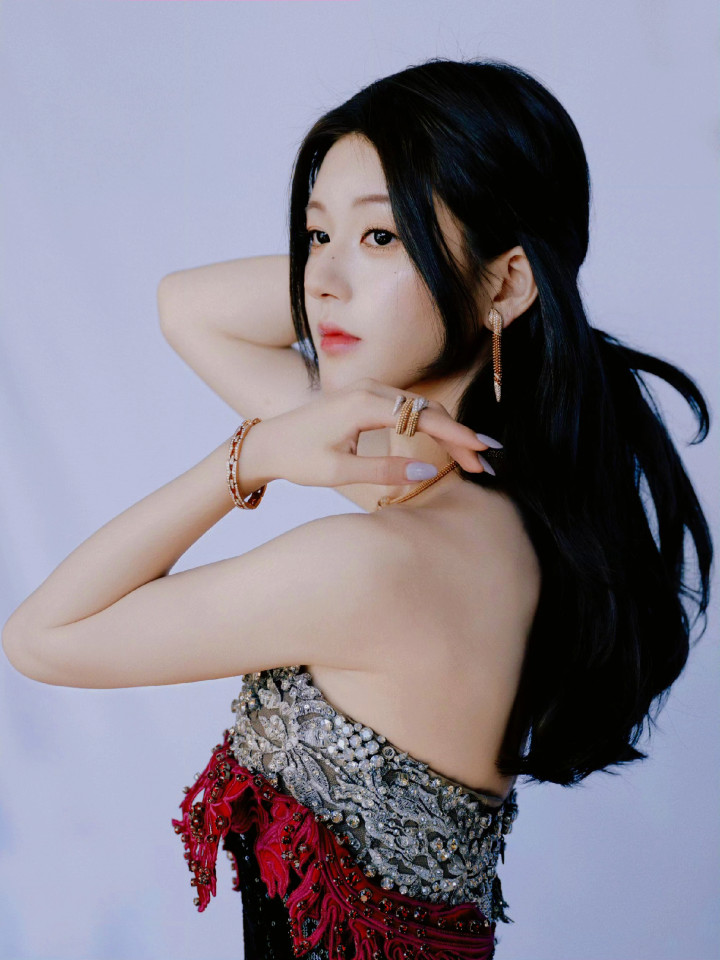 她侧身而立,指尖轻抵腰侧,甜妹的娇憨里长出了御姐的优雅,每一寸肌理皆透着流光溢彩的气场,是暖热与矛头的无缺和会。