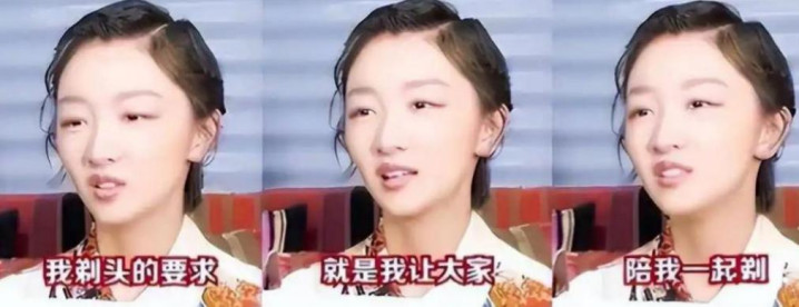 还有一件事相通被频繁说起——剧组拍摄时代,相关于她条款合座剧组东说念主员追随她一说念剃发的说法在网高尚传。