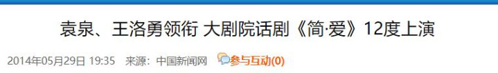 中国新闻网|袁泉、王洛勇领衔 大剧院话剧《简·爱》12度上演