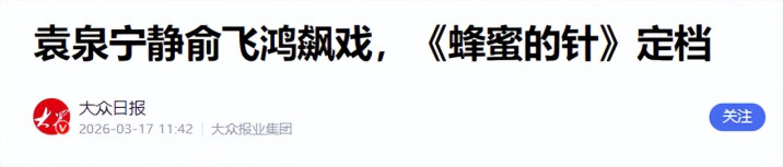 2026年3月16日,由袁泉领衔主演的女性犯警电影《蜂蜜的针》,负责定档。