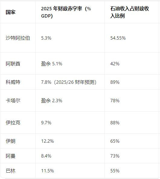 再和洽中东国度的财政赤字情况,你不错作念个筹算,然后你会发现一个细念念极恐的问题。