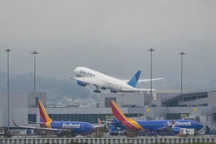 2025年12月20日,一架飞机从好意思国旧金山外洋机场升起。新华社发(朱子于摄)