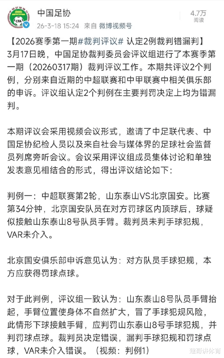 北京时代3月18日,足协官网发布公告,为上轮输球的北京国安队鸣了冤,足协称邀请了中足联代表、中国足协纪检东说念主员以及来自社会和媒体界的足球酬酢监督员列席旁听,吸收评议构成员集体权术和单独发布倡导相荟萃是时势,得出了国安应该取得点球,主裁判和视频裁判齐出现了错判的情况。