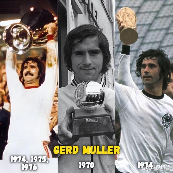 盖德·穆勒1974、1975和1976年欧冠夺冠,1970年得回金球奖,1974年奴隶西德寰球杯夺冠.