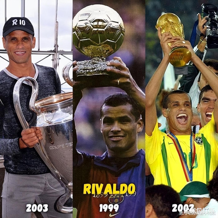 里瓦尔多2003年奴隶米兰欧冠夺冠,1999年巴萨技巧得回金球奖,2002年奴隶巴西寰球杯夺冠