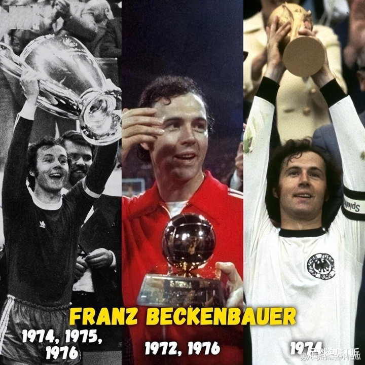 贝肯鲍尔在1974、1975和1976年得回欧冠冠军,1972和76年得回金球奖,74年指挥西德寰球杯夺冠。