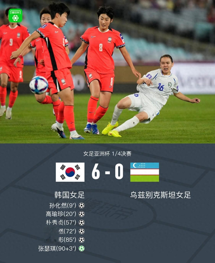 另一场稍早进行的四分之一决赛,在韩国女足与乌兹别克斯坦女足之间伸开。