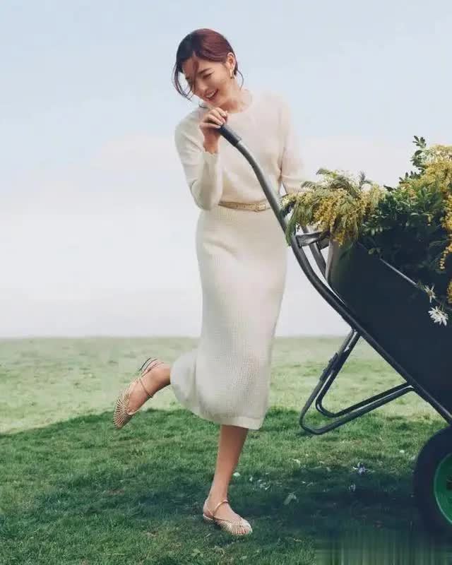 这组大片的动东谈主之处,在于精确捕捉到了辛芷蕾最本的确玩忽感,也完满呼应了 “目田助长” 的中枢主题。照相师将镜头置于春日怒放的花圃中,怒放的似锦、翠绿的草坪、相沿的长椅、载满花束的单车,共同组成了一个不被惊扰的春日秘境。