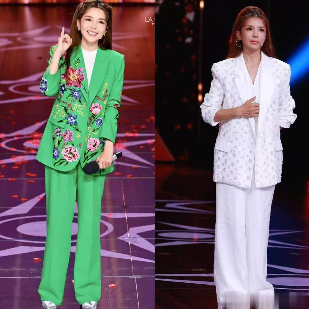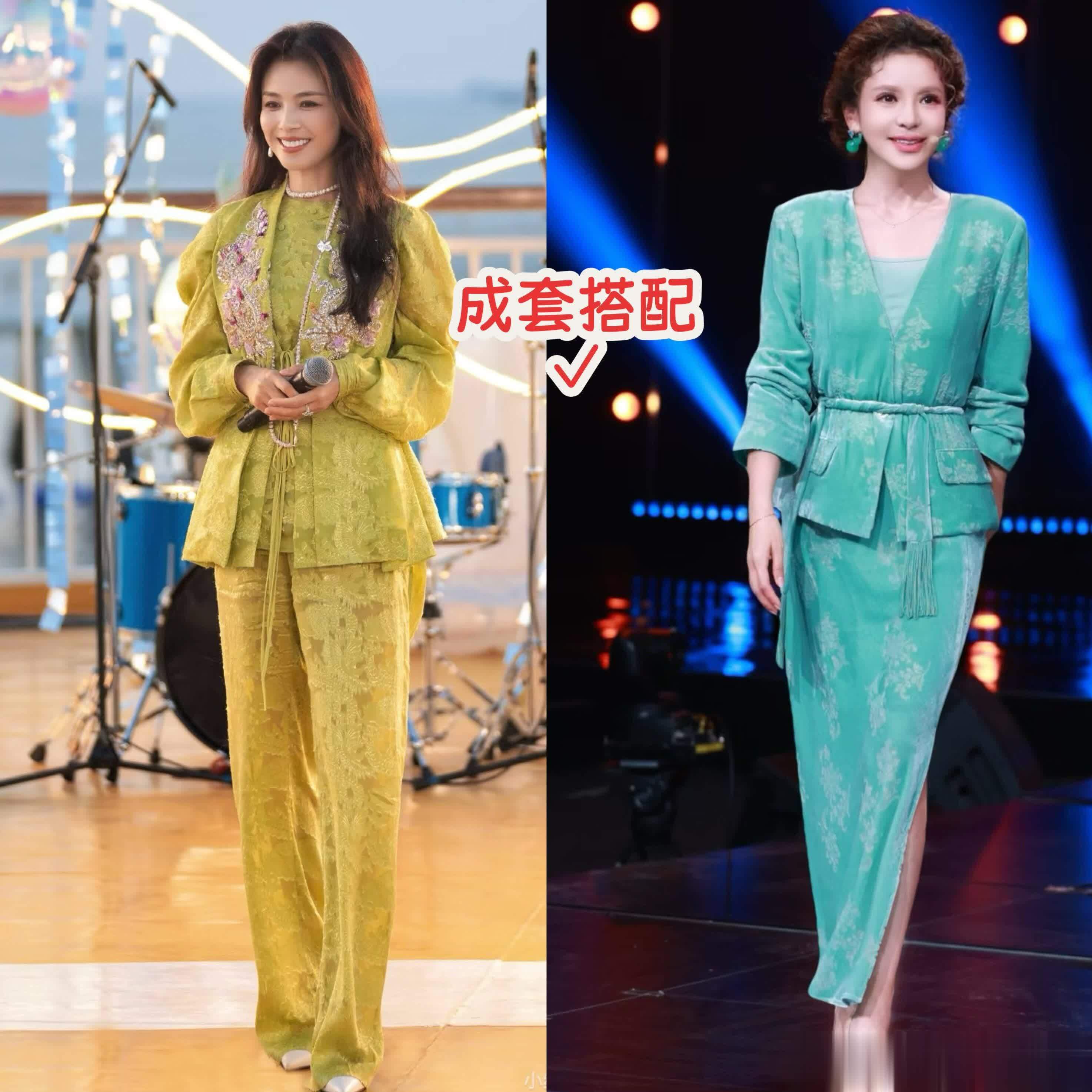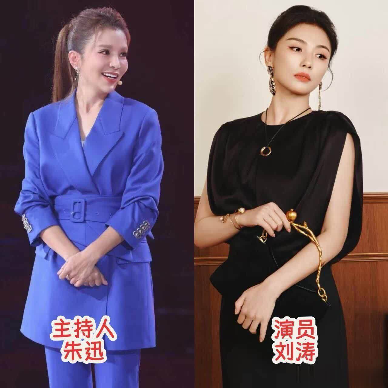 趁便再教群众一个妙技,稳健步地就别搞什么混搭叠穿了,确凿是太容易出错了,会给东说念主一种刻木为鹄的嗅觉,我们就学朱迅和刘涛,选剪裁称身、质感好的成套穿搭,一次性处治所有这个词造型。