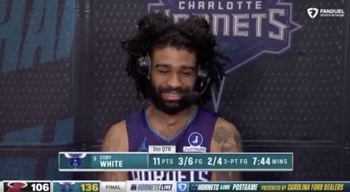 赛后黄蜂球员科比-怀特领受了记者采访,谈到了黄蜂队,怀特暗示:“他们的个东谈主技能强得离谱。”