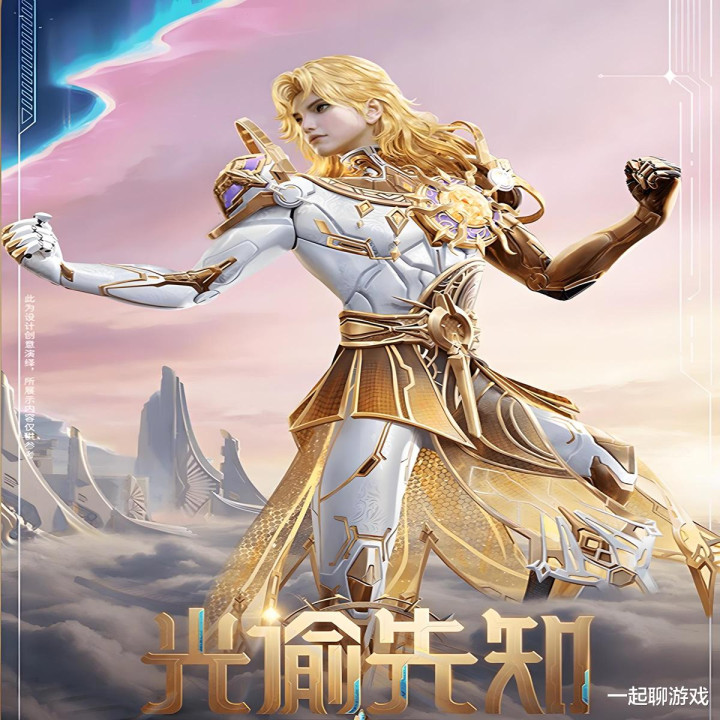 接下来出场的扮装名字叫“光谕先知”,时势以金色为主、白色为辅,同期加入了流光、机械、金发等元素,增多圣洁感。