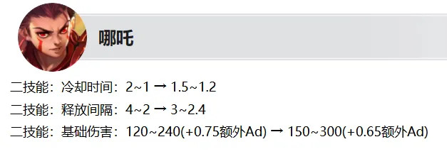 哪吒加强:2技术的前期CD和开释闭幕裁汰,但后期CD和开释闭幕加多,2技术的伤害加多。
