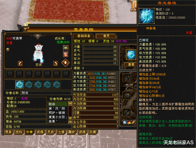 还有一只全服第一的满级兽灵5000+穷奇!太顶了!综合实力全齐第一!