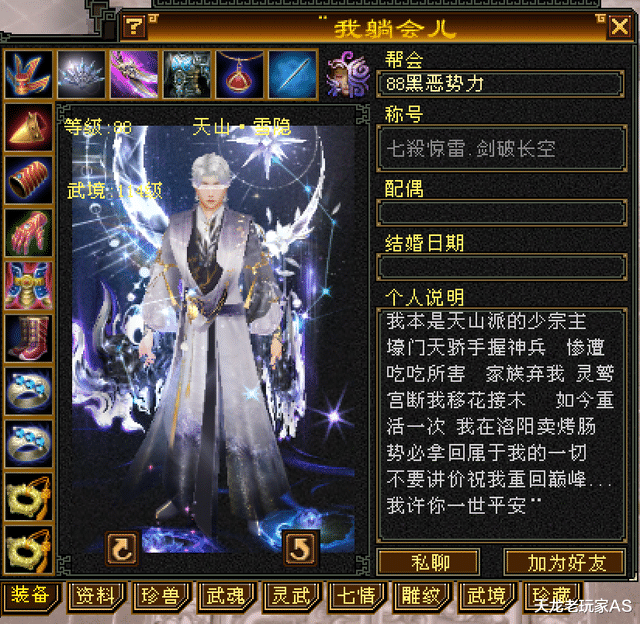 顶级卡级6级号!来自【天劣等一】业绩器的88级天山“我躺会儿”:
