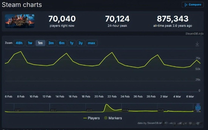 靠谱的滚球app中国官网 《博德之门3》发售3年依然“能打”! 平均7万东说念主还在玩!