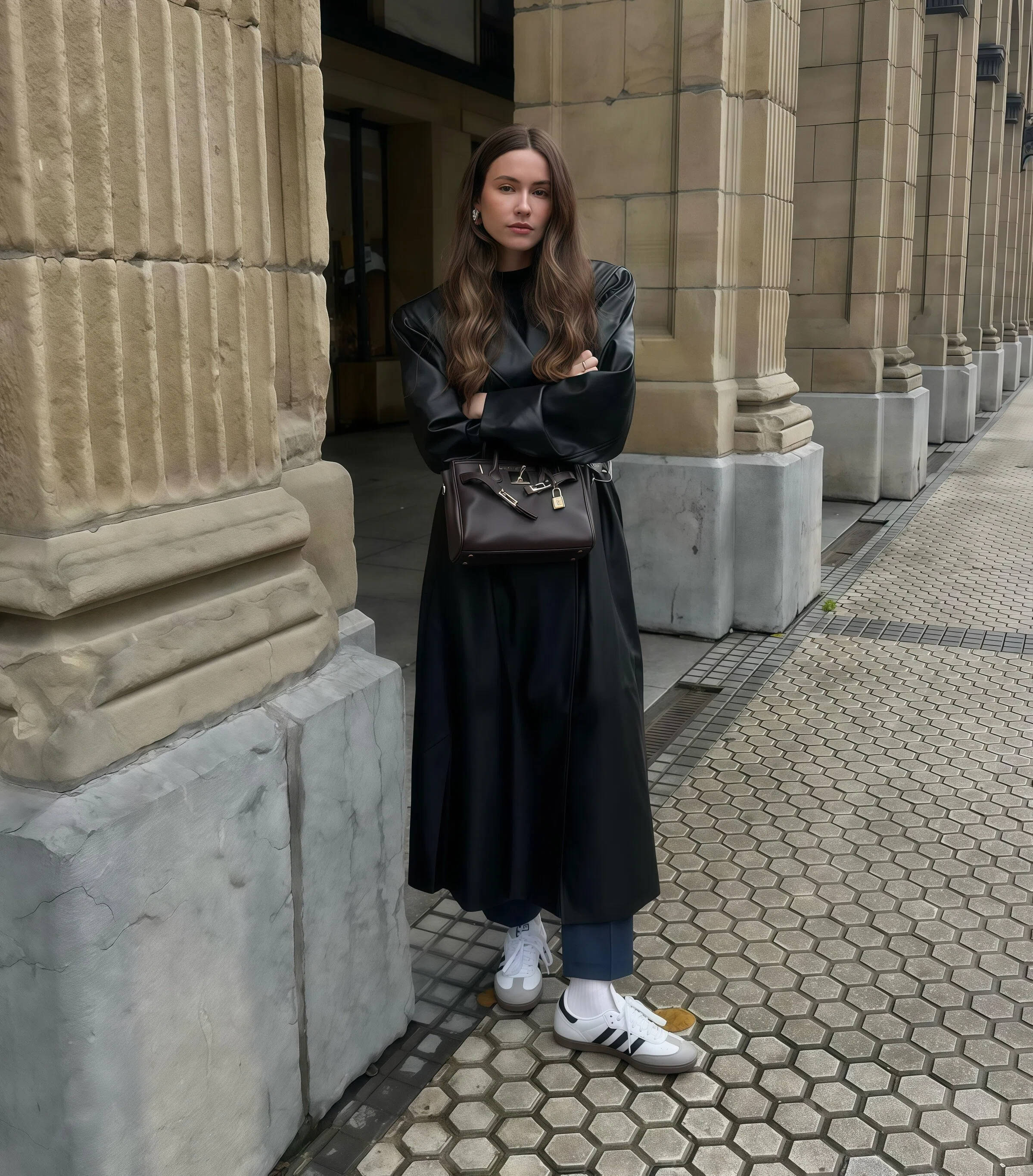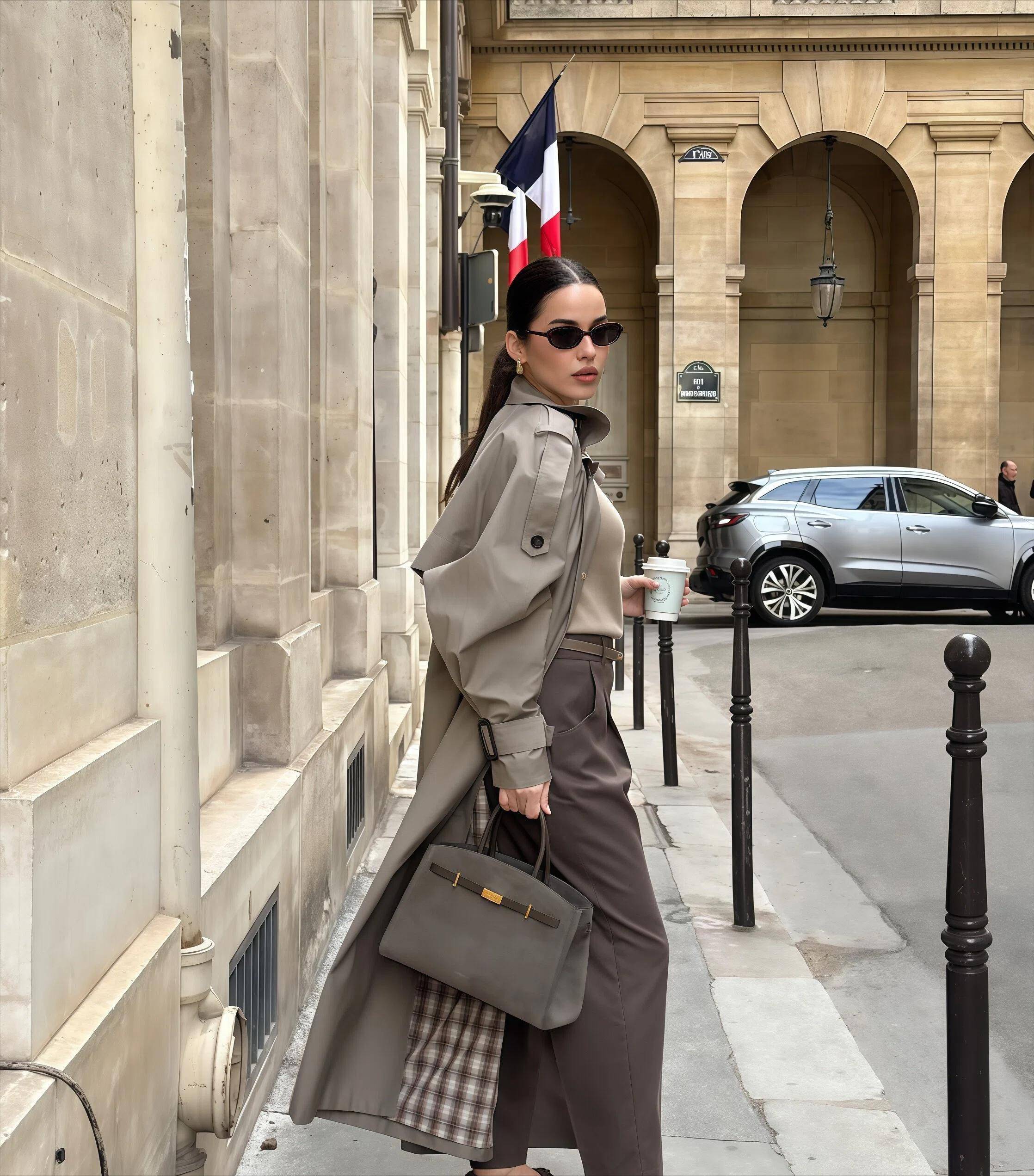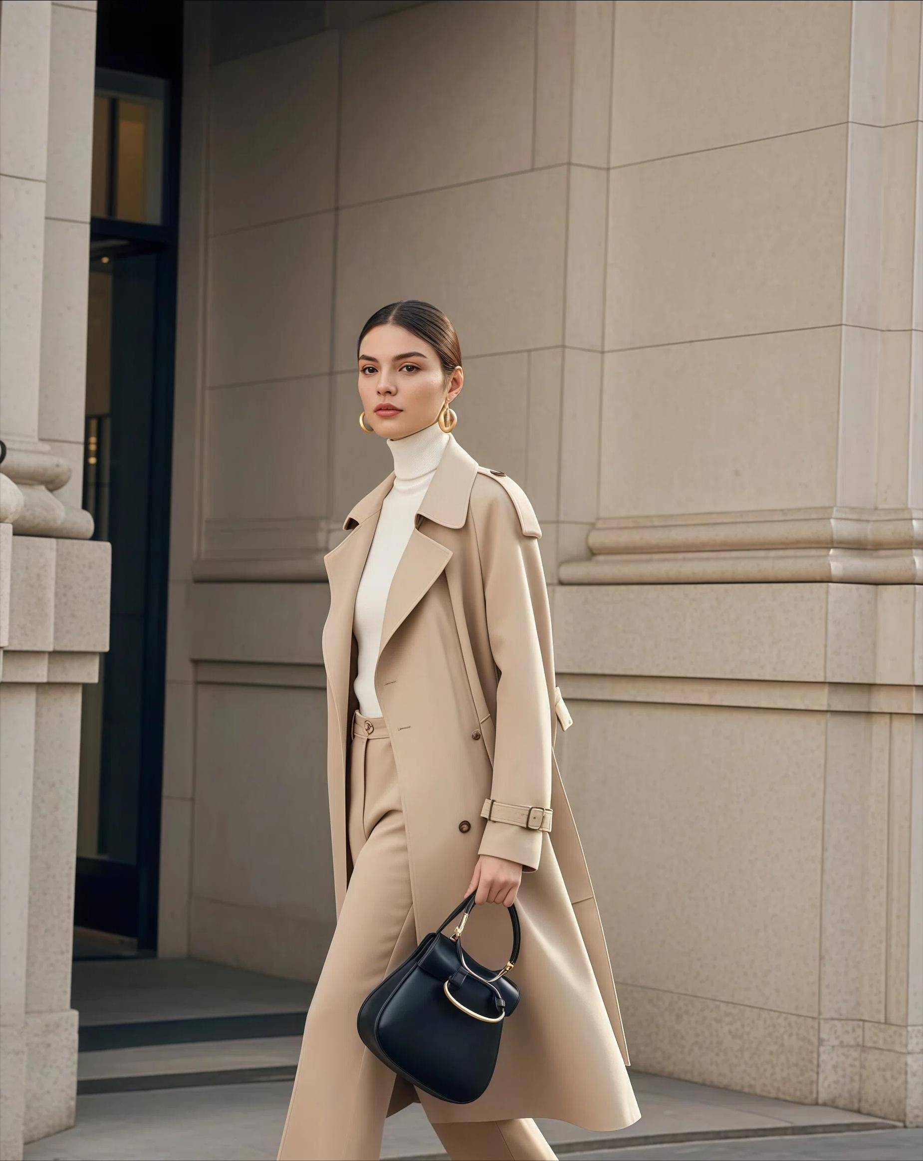■长风衣配九分裤,气场更足
