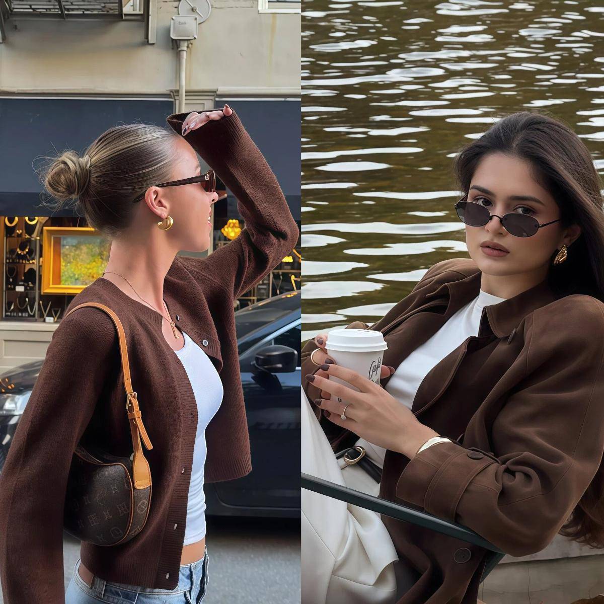 同色系西安装九分裤是最宽解的通勤搭配,一套穿外出不必纠结配色问题,深棕色西装搭配浅棕九分裤,脚上踩一对平底鞋,这种同色系搭配,不仅能让你看起来相等干净干练,还不错在视觉上,显得你相等高。