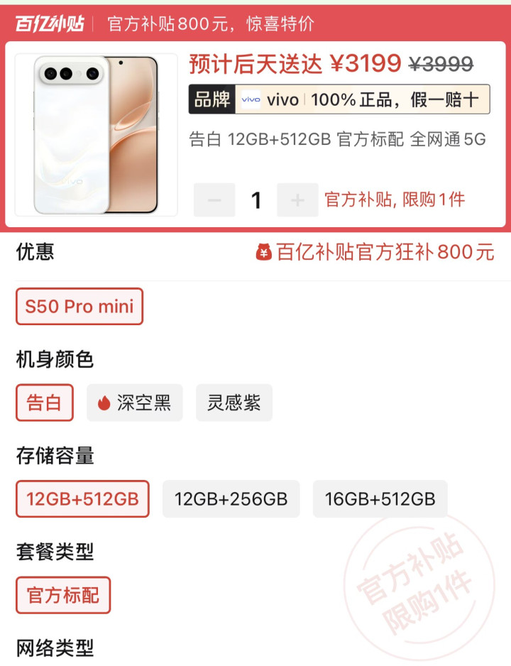 淌若说畴昔的小屏手机常常让东说念主纠结性能、续航或影像滚球app,那么这款vivo S50 Pro mini更像是一次“完全要”的尝试!它在轻巧机身里塞进旗舰级芯片、大电板、高规格影像与全面通讯才调,还兼顾护眼与耐用性,既有颜值、又有实力,既得当正常使用、也能孤高创作与文娱需求,平衡的整机确立参数诈欺到正常生存之中,亦然简略带来较为出色的使用体验感,而就在价钱层面亦然够有忠诚的,参考到如今电商平台中的价钱,512GB的内存规格仅为3199元的价钱即可脱手了。