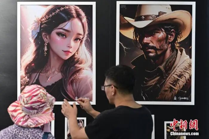 府上图:参不雅者不雅看AIGC艺术展。中新社记者田雨昊摄