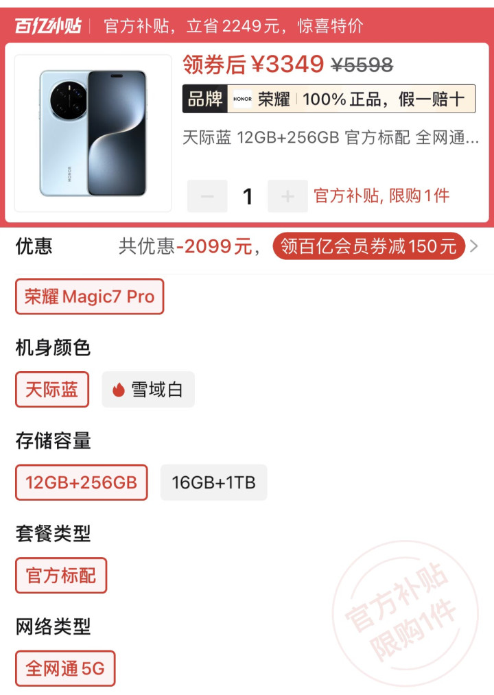 总的来说,就荣耀Magic 7 Pro这款旗舰机型,并不是某一个参数荒谬夸张,而是它莫得彰着短板,就性能、屏幕、影像、续航、通讯、安全,每一项皆在线,致使皆有点“超纲说明”,不像某些手机那样只强调一个卖点滚球app中国官方网站,而是把合座体验作念到平衡又极致,别看这是旧款旗舰的定位了,就期骗到日常生存之中,依旧是偶然带来较为出色的使用体验感,况兼,就在价钱层面所出现的下调幅度亦然很大的,参考到如今电商平台中的售价情况,照旧是从5699元的上市价钱跌到了3349元的售价了。