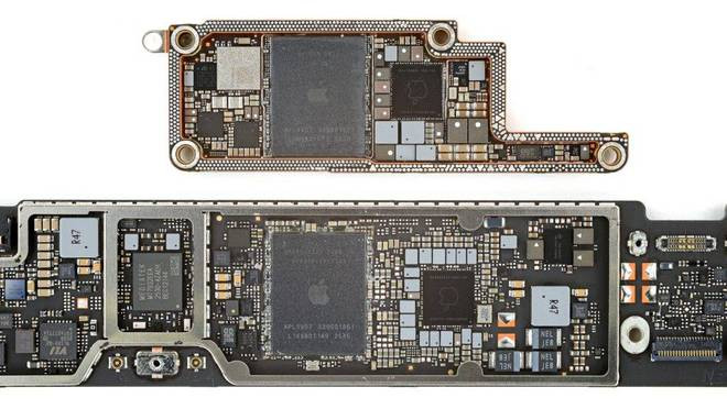 ▲上:iPhone16Pro主板;下:MacBookNeo主板