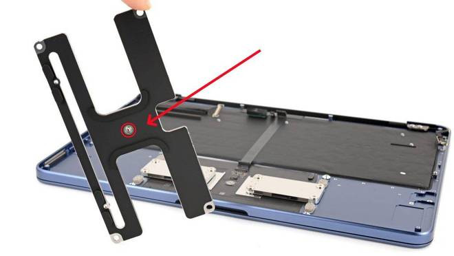 最初,在「开盖」上,MacBookNeo就还是大幅裁减了拆机门槛,唯一用对应的螺丝刀卸动条记本D面的五角螺丝,就能徒手将后盖卸下,而以往的MacBook还需要用吸盘、翘板等器具掀开卡扣。