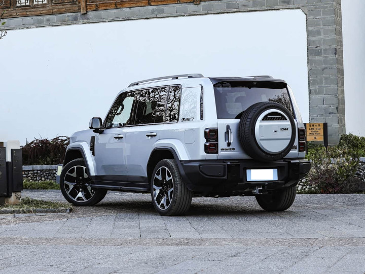 再来看车尾部分,车尾的蓄意通常可圈可点,外挂式备胎罩是硬派SUV的经典记号,iCAR V27将其与车身同色打造,中央印有的“iCAR”字样,普及了全体的良好感。竖直枚举的红黑尾灯极具辨识度,不同灯带对应不同功能,转向灯、后雾灯、倒车灯各司其职,既实用又好意思不雅。后保障杠以玄色为主,兼具驻防与爽脆感,“iCAR V27”记号明晰呈现,彰显了车型身份。侧开式尾门的蓄意,在保留硬派立场的同期,也普及了平淡使用的便利性。